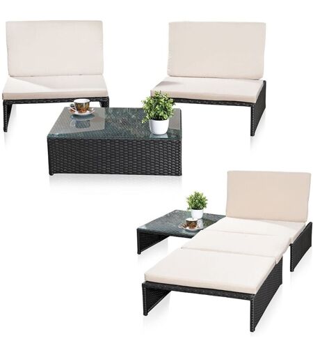 MELKO Ensemble de mobilier de jardin polyvalent - chaise longue, banc ou deux chaises avec dossier, avec table en polyrattan, chaise longue de jardin