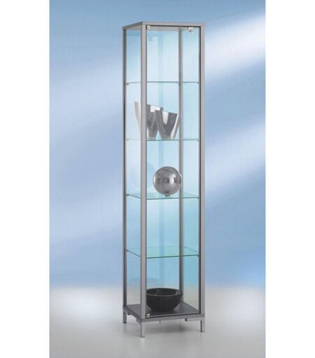 Vitrine colonne LINK, 4 tablettes, porte battante, h x l x p 1860 x 400 x 400 mm. Produit livré = monté. Hauteur = 1860 mm. Largeur = 400 mm. Profondeur = 400 mm. Matériau = en verre sécurit. Matériau cadre = aluminium. Coloris cadre = anodisé argent. Nombre de tablettes = 4 pces. Matériau tablettes = verre épais. Version = vitrine colonne. Type de porte = porte battante. Verrouillage = serrure à cylindre de sécurité. Eclairage = sans éclairage. Poids = 58.4 kg. 4 tablettes en verre réglables en hauteur. Porte pivotante verrouillable. Vitrage en verre sécurit sur le pourtour. Produits livrés montés. ...
