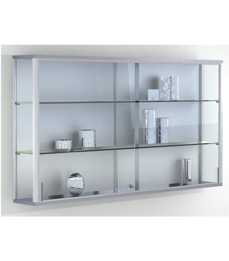 Vitrine murale LINK, 2 tablettes, portes coulissantes, h x l x p 800 x 1500 x 200 mm. Produit livré = monté. Hauteur = 800 mm. Largeur = 1500 mm. Profondeur = 200 mm. Matériau = en verre sécurit. Matériau cadre = aluminium. Coloris cadre = anodisé argent. Nombre de tablettes = 2 pces. Matériau tablettes = verre épais. Type de porte = porte coulissante. Verrouillage = serrure à cylindre de sécurité. Charge max. par tablette = 12 kg. Eclairage = sans éclairage. Poids = 36.5 kg. Vitrage sur 3 côtés en verre sécurit. 2 tablettes en verre réglables en hauteur. 2 portes coulissantes verrouillables. Produits livrés montés. ...