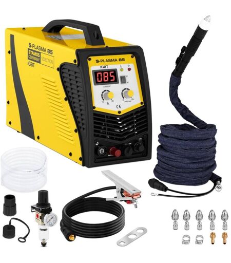 ⭐⭐⭐⭐⭐ Découpeur plasma CNC - 85A - 400V de marques Stamos Selection ✅ Modèle: S-PLASMA 85H ✅ Article: 10020079 ⬇️ Caractéristiques principales Appareil professionnel Puissance de coupe de 85 ampères Allumage pilote / Port d'alimentation de 380 volts Ventilateurs puissants pour le refroidissement / Technologie bipolaire (IGBT) Protection contre la surchauffe / Affichage digital (LED) ⬇️ Détails techniques Débit d'air [l/min] 175 Facteur de marche [%] 60 Puissance d'entrée [kVA] 8,6 Facteur de puissance 0,93 Largeur de coupe [mm] 1,2 Délai d'arrêt du gaz [s] 2 - 15 Puissance d'entrée max. [kVA] 13,2 Classe d’isolation F Courant d'entrée max. [A] 18,6 Courant nominal d’entrée [A] 13,2 CNC (MOCN) Oui 2T / 4T Oui Cordon(s) d'alimentation 3.8 m Manuel d'utilisation Oui Fréquence [Hz] 50 Soft start (démarrage en douceur) Oui Refroidissement à l'eau Non Câble plasma 5 m Test de gaz Oui Pression de gonflage 5.5 Bar Câble de masse 4 m Longueur du tuyau à air comprimé [m] 4 Amorçage plasma Pilot ...