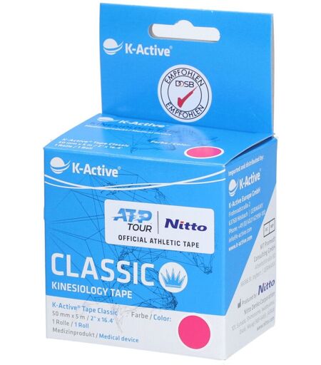 Le K-Active® Tape Classic est le modèle polyvalent des Kinesiological Tapes : Que ce soit pour les sportifs, les patients, les femmes enceintes, les enfants, etc., le ruban répond à toutes les exigences par sa tenue solide et sa bonne compatibilité cutanée. L'origine de tous les rubans kinésiologiques Adhésif doux pour la peau, tissu de coton sans additifs Convient aux peaux sensibles Perméable à l'air et hydrofuge Très bonne adhérence, même sous la douche et à la piscineConditonnement 1 Rouleau ...