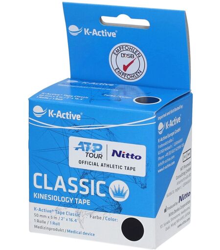 Le K-Active® Tape Classic est le modèle polyvalent des Kinesiological Tapes : Que ce soit pour les sportifs, les patients, les femmes enceintes, les enfants, etc., le ruban répond à toutes les exigences par sa tenue solide et sa bonne compatibilité cutanée. L'origine de tous les rubans kinésiologiques Adhésif doux pour la peau, tissu de coton sans additifs Convient aux peaux sensibles Perméable à l'air et hydrofuge Très bonne adhérence, même sous la douche et à la piscineConditonnement 1 Rouleau ...