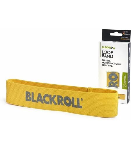 BLACKROLL® LOOP BAND Extra Heavy est une bande de résistance en tissu élastique doux pour la peau, convenant aux personnes allergiques au Latex, spécialement conçue pour les exercices de type Squat présentant la résistance la plus forte de sa gamme.BLACKROLL® LOOP BAND Extra heavy : Elastique de résistance en tissu le plus fortLes BLACKROLL® LOOP BANDS permettent de réaliser des "chaînes musculaires" particulièrement efficace dans le cadre d'un entraînement fonctionnel. Leur composition en caoutchouc naturel tissé dans des fibres textiles non agressives pour la peau permettent de ne pas souffrir de tiraillements irritant lors de l'entraînement, empêchant également l'apparition de rougeurs sur la peau.Pour travailler de manière encore plus précise, BLACKROLL® propose un pack comprenant tous ses 6 élastiques (jaune + orange + rouge + vert + bleu + noir) aux niveaux de résistances progressifs dans le pack BLACKROLL LOOP BAND SET FULL.Exercices et bienfaits de l'élastique BLACKROLL® LOOP B... ...
