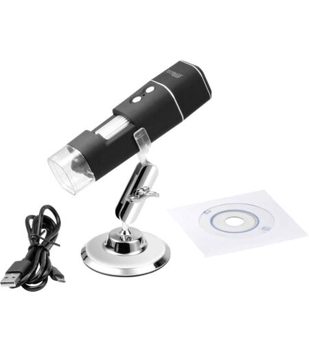 Informations techniques Dimensions produit, largeur : 30 mm Grossissement optique (max.) : 1000 x Grossissement optique (min.) : 50 x Longueur : 130 mm Poids : 270 g Points forts Grossissement jusqu'à 1000 fois Fonction Wi-Fi pour la capture d'images sans fil Résolution FullHD Mode photo et vidéo 8 LED pour un éclairage parfait Ce texte a été traduit par une machine. Fonctionnalités Résolution FHD (1920 x 1080) / 1M(1280 x 720) / VGA (640 x 480) puissance de sortie WLAN rayonnée max. 100 mW interface réseau: 2,4 GHz WiFi WiFi: IEEE802.11b/g/n ouverture F 1,2 f = 25 mm angle de vue FOV = 16°, diamètre 24 mm grossissement 50x jusqu'à 1000x support de stockage smartphone / PC port USB Micro-USB 2.0 alimentation DC 5V, 1A batterie intégrée type lithium-ion, 3,7V 800 mAh autonomie env. 90 min. température de fonctionnement de 0°C à 40°C grossissement réglable avec molette de défilement pour Windows, Android et iOS Contenu de la livraison Avec support Câble Micro USB Configuration requise ...