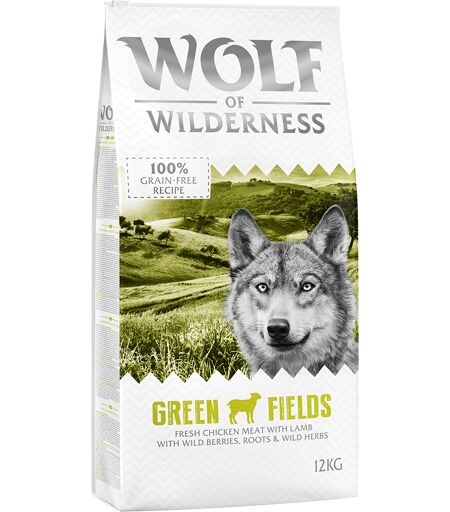 12kg Agneau Sans céréales Croquettes pour chien Green Fields Wolf of Wilderness