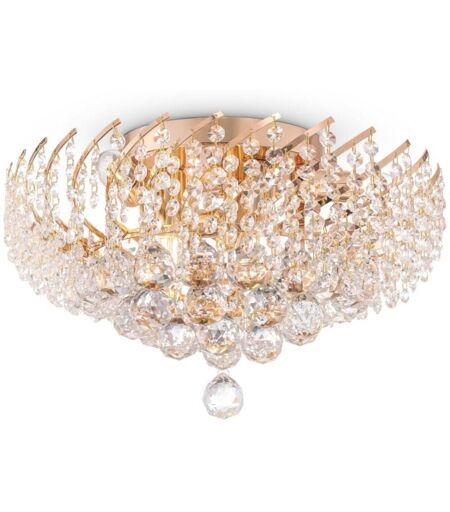 Karolina Plafonnier semi-encastré doré et cristal, 6 Finition : Or Hauteur : 21,50 cm Hauteur maximale : 24 cm Diamètre : 41 cm Type de lampe : E14 Nombre de Classement IP : IP20 Puissance (max): 40W Poids (kg) : 5,40 ...