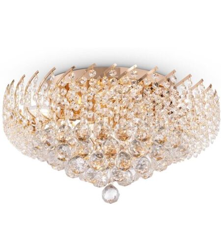 Karolina Plafonnier semi-encastré doré et cristal, 9 Finition : Or Hauteur : 24,50 cm Hauteur maximale : 27 cm Diamètre : 51 cm Type de lampe : E14 Nombre de Classement IP : IP20 Puissance (max): 40W Poids (kg) : 8,40 ...