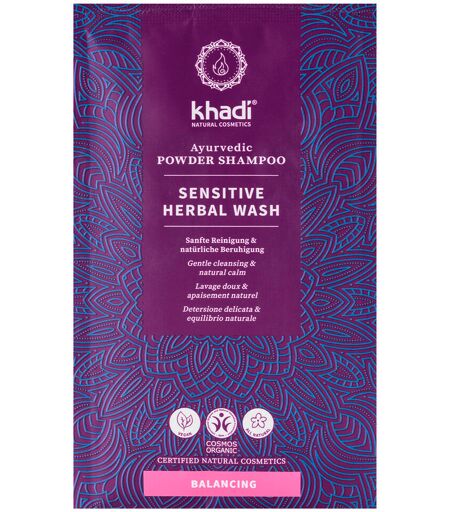 Le gant de velours pour vos cheveux sensibles : shampooing en poudre très doux, apaisant et nourrissant intensément. Le shampooing en poudre Khadi Ayurvedic Sensitive Herbal Wash est un nettoyage doux et un soin en un. De manière traditionnelle ayurvédique et naturelle, il harmonise votre cuir chevelu et donne à vos cheveux un soin intensif. Le shampooing à la poudre de Khadi est la réponse ayurvédique aux soins capillaires solides : naturel, hautement concentré, efficace et tellement doux. Le secret du shampooing en poudre nettoyant et en même temps soignant Sensitive Herbal Wash repose sur l'effet de la trinité Khadi : 1. le pouvoir efficace individuel des herbes médicinales indiennes cueillies à la main s'unit pour former un tout et est potentialisé dans sa puissance. 2. le shampooing en poudre Khadi est naturellement concentré, efficace et en même temps si doux. 2. Le shampooing en poudre est composé selon d'anciennes recettes ayurvédiques. 3. dans le cadre d'un processus de fabrication traditionnel, ils sont broyés avec une telle douceur et une telle finesse de poudre qu'il est difficile de faire plus fin. Dès que vous appliquerez le shampooing doux, vous sentirez votre cuir chevelu se détendre, les irritations seront apaisées et vos cheveux apprécieront ce soin apaisant. Pure Ayurveda - Sensitive Herbal Wash Powder Shampoo combine un riche trésor de plantes médicinales indiennes sélectionnées. Le basilic sacré a un effet calmant et équilibrant. Le Reetha nettoie en douceur et, avec le Shikakai, il renforce particulièrement la brillance. Le Bhringaraj favorise la guérison, a un effet fortifiant et rafraîchissant. Le neem est fortement antiseptique et soulage donc les pellicules et les démangeaisons inflammatoires. L'hibiscus est riche en vitamines et en minéraux. Il ajoute de l'humidité aux cheveux, favorisant leur force et leur vitalité. Le fenugrec est un remède bien connu pour les maladies de la peau. Il a un effet antibactérien contre l'inflammation et renforce les cheveux jusqu'aux racines. Les vitamines C, E et D qu'il contient favorisent la circulation sanguine dans le cuir chevelu, protègent contre les radicaux libres, soutiennent la croissance des cheveux et sont également efficaces contre la chute des cheveux. L'amla apporte à vos cheveux beaucoup de vitamine C et d'antioxydants... pour ne citer que quelques ingrédients ! Le shampooing en poudre Khadi Sensitive Herbal Wash fait partie de la gamme de produits "Balancing" - dans un ensemble, ils se complètent pour former une équipe de rêve pour apaiser et calmer les cuirs chevelus irrités et nettoyer en douceur qui ramène vos cheveux à l'équilibre. Nous la recommandons également en association avec l'huile capillaire khadi Neem Harmony pour les cuirs chevelus très sensibles, squameux et enflammés. Khadi Ayurvedic Powder Shampooing Sensitive Herbal Wash est un produit de nettoyage et de soin en un. De manière traditionnelle ayurvédique et naturelle, il harmonise votre cuir chevelu et... ...