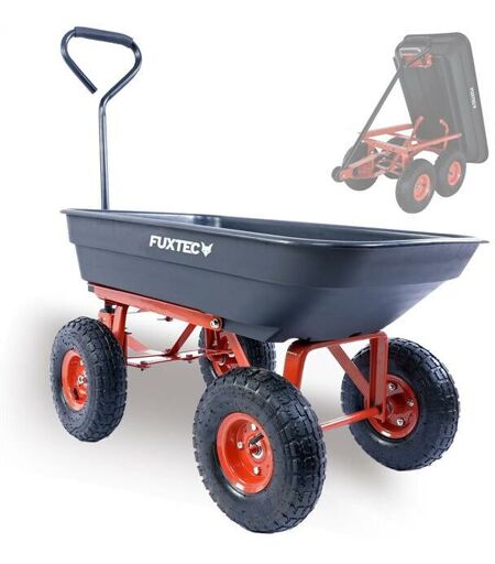 Chariot de jardin Fuxtec FX-KW2175 - 4 roues, benne basculante, transport, 300 kg chantier
