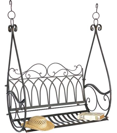 Ce banc suspendu confortable pour 2 personnes vous permet de réaliser le rêve d'une balancelle hollywoodienne dans votre jardin, votre véranda, votre terrasse ou à tout autre endroit de votre choix. Avec son look vintage de haute qualité visuelle, ce canapé suspendu attire tous les regards. Grâce au fer forgé robuste, le banc offre une grande stabilité. Accrochez simplement la balancelle suspendue à une structure existante ou à un arbre grâce aux crochets intégrés. Les ?illets facilitent cette opération. La balançoire peut supporter une charge maximale de 150 kg. Il est possible d'augmenter la hauteur de suspension à l'aide de chaînes (non fournies). Montage très simple. Monté en seulement 2 étapes. Déplier le banc déjà assemblé, visser les deux parties latérales sur le banc déplié. Dimensions Assise: largeur 96 cm, profondeur 45 cm Hauteur du dossier: 60 cm Largeur 105 cm, profondeur 55 cm, hauteur 60 cm Hauteur jusqu'à la suspension (extensible): 132 cm Poids: 22 kg ...