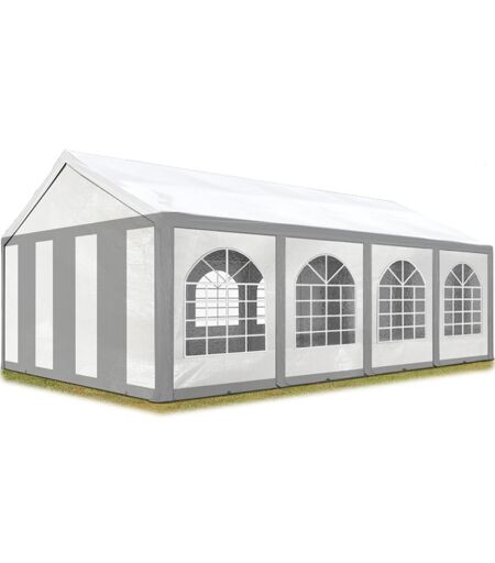INTENT24 Tente de réception 4x8 m barnum Toile de Haute qualité 450 N PE Gris-Blanc Construction en Acier galvanisé avec raccordement par vissage
