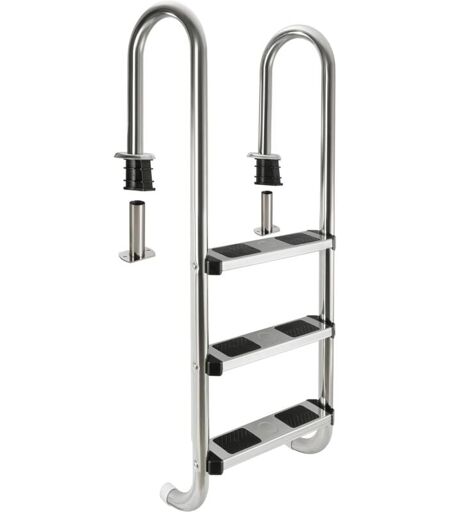 AREBOS Echelle de Piscine en Acier Inoxydable 3 marches avec Patins antidérapants sur Les échelons Echelle d'accès Argent 132x45x23
