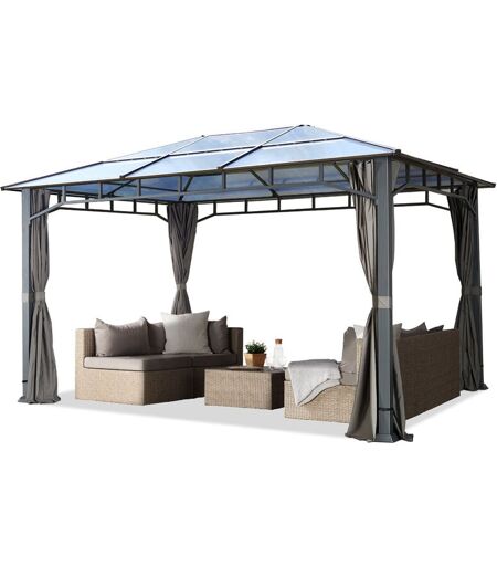 INTENT24 Pavillon de jardin 3x4 m imperméable toit en polycarbonate alu deluxe tonnelle 8mm pavillon 4 côtés partie tente gris env. 9x9 cm profil