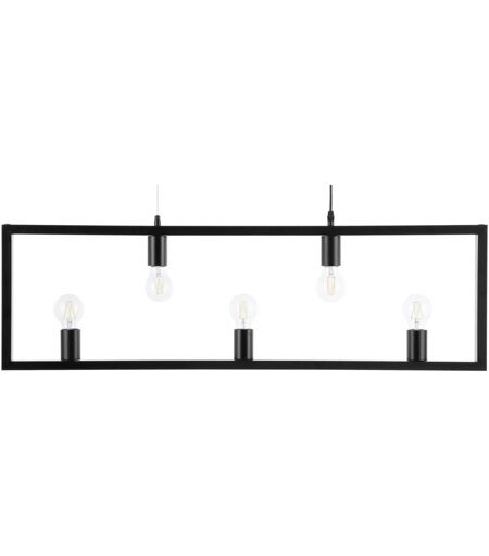 Lampe suspension fantaisie à 5 ampoules. Cette lampe moderne rectangulaire vous aidera à illuminer votre maison. Le fait de pouvoir utiliser jusqu'à cinq ampoules signifie que vous n'aurez pas besoin d'utiliser un éclairage supplémentaire, car la lumière atteindra tous les angles et recoins de votre pièce. Elle constitue un excellent choix pour le salon ou la salle à manger. Détails: Type de produit: Lampe suspension Style: Moderne Couleur principale: Noir Type de matière: Métal Matière principale: Métal Matière secondaire: PVC Matière de l`abat-jour: Métal Puissance: Max. 40 W Code de protection IP: IP 20 Ampoules requises: 5 Tension: 230 V (50 Hz) Dimensions: Longueur du cable: 97 cm Profondeur: 4 cm Largeur: 100 cm Hauteur: 127 cm Poids: 3.5 kg L`offre inclue: 1 x Lampe de plafond, Non inclus : ampoule Caractéristiques clés: Se combine parfaitement avec une lumière ambiante, Design et couleur tendance, Meuble attrayant pour l'intérieur, En harmonie avec n'importe quel type de ...