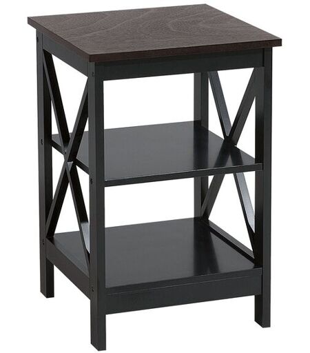 Table d'appoint noire composée de 2 étagères. Cette table d'apoint élégante offre l'espace dont vous avez besoin dans votre maison. Le plateau de la table est carré en MDF avec placage en bois d'Okoumé parfaitement combiné avec le cadre laqué de couleur noire avec des montants latéraux en croix et deux étagères. Le design s'intègre parfaitement dans tous les espaces de vie, que ce soit comme une table d'appoint dans le salon, comme un espace de rangement pratique dans la zone d'entrée ou comme une table de chevet dans la chambre. Ce meuble convient à tous les usages. La couleur foncée peut être parfaitement combinée avec des styles d'ameublement modernes, industriels, urbains et constitue un atout décoratif non négligeable à n'importe quelle pièce. Détails: Type de produit: Table d'appoint Style: Rustique Couleur principale: Noir Type de matière: Bois Matière principale: MDF Matière du piétement: Bois d'ingénierie Matière du plateau: Bois d'ingénierie Forme: Carré Finition: Mat Rangement: Oui Dimensions: Largeur: 40 cm Longueur: 40 cm Hauteur: 60 cm Poids: 8 kg Charge admise: 10 kg L`offre inclue: 1 x Table d'appoint Caractéristiques clés: Étagère pratique, parfaite pour entreposer des bibelots, Un style simple s'adaptant à tout type d'intérieur, Construction durable et stable, Assemblage facile, autonome, Multifonctionnel Informations d`assemblage: À assembler entièrement. 45 - 60 min Informations supplémentaires: Pour maintenir la longévité et l'esthétique du plan de travail, nous recommandons d'utiliser des sets de table et des dessous de verre, ainsi que d'enlever les taches humides le plus tôt possible, afin d'éviter d'endommager le produit. Conseils de maintenance: MDF: 1.Nettoyez avec un chiffon et un détergent doux. Essuyez bien après le nettoyage. ...