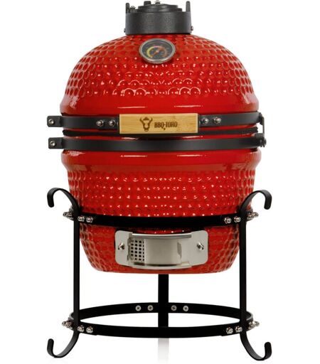 BBQ-Toro Kamado Grill charbon de bois Ø 32 cm « HAIIRO » avec grille et thermomètre, rouge Un barbecue céramique au charbon haut de gamme avec lequel vous obtenez, grâce à sa masse élevée de céramique, une accumulation optimale de la chaleur. Grâce à l´effet de cheminée, le matériau de combustion est brûlé efficacement dans le gril céramique Kamado et il en faut nettement moins. Grillades, cuisson, fumage et cuisson au four parfaits. Braiser et cuire à la vapeur - aucun problème avec le HAIIRO. Ou tout simplement faire cuire une pizza délicieuse et croustillante ? Un barbecue japonais convient à pratiquement toutes les techniques de cuisson. Le thermomètre dans le couvercle mesure de manière fiable la température jusqu´à 425°C ou 800°F. Le barbecue BBQ possède un support en acier. Grâce à la sécurité intégrée, le couvercle reste toujours ouvert malgré son poids. Grâce à sa taille, ce barbecue Kamado est parfait pour les petites sessions de grillades. Grâce à sa surface émaillée avec ...