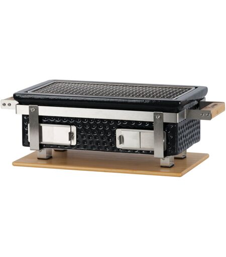 Bbq-toro - Céramique Barbecue de table au charbon de bois avec support en bois Noir Barbecue Hibachi d'extérieur pour le camping