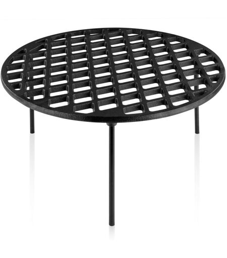 BBQ-Toro grille de cuisson en fonte Ø 40 cm avec 3 pieds, dessous de plat Dutch Oven, accessoires pour barbecue, trépied La grille en fonte BBQ-Toro est multifonctionnelle, car elle peut parfaitement être utilisée comme grille de barbecue, dessous de plat pour Dutch Oven et dessous de poêle. La grille peut également être utilisée sans pieds. Posez la grille directement sur votre charbon de bois incandescent et faites vos grillades directement sur la grille. Qu´il s´agisse de légumes, de poisson ou de viande, cette grille vous permet de préparer de délicieux plats avec le branding incomparable d´une grille de barbecue en fonte. Mais la grille à trois pieds est également le compagnon idéal en tant que dessous de plat pour Dutch Oven et table. Il suffit de poser la grille en fonte sur votre charbon de bois incandescent et de placer le Dutch Oven sur la grille. La grille à trois pieds de BBQ-Toro est déjà cuite et peut être utilisée immédiatement. Elle est livrée avec des instructions ...