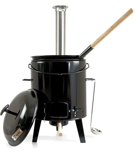 Description générale Le canon à goulash BBQ-Toro est parfait pour préparer une variété de plats comme des soupes, ragoûts, goulash, chili con carne et même des boissons chaudes comme le vin chaud. Ce dispositif de cuisine de campagne est idéal pour les fêtes, événements et activités en plein air. Spécifications techniques Poêle émaillé avec tuyau de cheminée en acier inoxydable (L)48 x (P)64 x (H)91 cm Grande marmite en émail Ø 36 x (H)21 cm (capacité : 17 litres) Rôtissoire en émail Ø 33,5 x (H)11 cm (capacité : 8 litres) avec manche en bois Couvercle émaillé avec poignée en plastique Louche et grille à charbon en acier inoxydable Récipient à cendres amovible avec poignée en bois Compatible avec le bois, le charbon ou le charbon de bois Compatibilité et accessoires Convient pour les fêtes, célébrations familiales, marchés, et camping Installation Facile à transporter grâce aux poignées latérales Stable sur trois pieds Utilisation Idéal pour préparer goulash, ragoûts, soupes, punch et ...