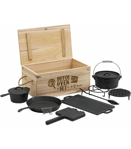Bbq-toro - Dutch Oven Set dans une boîte en bois (10 pièces) fonte - déjà brûlé