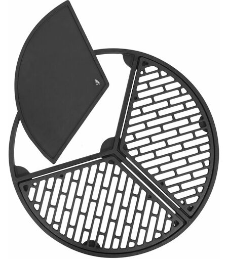Description générale Ce set de plancha en fonte de BBQ-Toro est conçu pour les grills à charbon de bois de 57 cm, incluant les modèles Weber One Touch Kettle Grill. Il comprend un cadre avec deux grilles de gril et une plaque de gril, offrant une polyvalence pour griller de la viande, du poisson, des légumes ou du fromage. Spécifications techniques Taille totale : Ø 54,5 x (H) 1,5 cm Taille de l'assiette/grille : (L) 43,5 x (P) 25,5 x (H) 1 cm Matériau : Fonte Poids : 9,2 kg Pré-saisonné et prêt à l'emploi Compatibilité et accessoires Compatible avec les grills de bouilloire de Ø 57 cm Adapté pour divers modèles de grills, y compris Weber Installation Facile à installer sur votre grill existant Instructions détaillées incluses pour un usage optimal Utilisation Utilisez simultanément la grille et la plaque de gril pour différentes méthodes de cuisson. Pour ajouter du charbon de bois, soulevez l’un des inserts tout en maintenant les autres surfaces en fonctionnement. ...