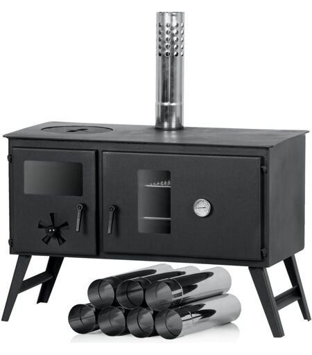 CampFeuer Four pour tente 28,5 x 58,5 x 260 cm Chauffage de tente, four à bois pour camping Avec le four pour tente CampFeuer, vous évitez que vos invités aient froid, que ce soit en plein air ou dans une tente résistante au feu. En même temps, vous pouvez même cuisiner, rôtir, cuire ou faire chauffer de l´eau sur le four. Grâce au système d´emboîtement, le four peut être monté et démonté en peu de temps. De plus, le four de tente est maniable et compact : les tuyaux du four sont rangés à l´intérieur du four pour tente et les pieds sont rabattables - des conditions idéales pour vous accompagner lors du prochain séjour en camping! GESTION Le régulateur d´air et le verrou de porte permettent de réguler le flux d´air dans le four. Vous pouvez ainsi mieux contrôler la chaleur et l´adapter à votre guise. De plus, grâce à la fenêtre de contrôle, vous pouvez surveiller le feu sans devoir ouvrir la porte. Points forts - Parfait pour cuisiner et chauffer à l’extérieur ou dans une tente ...