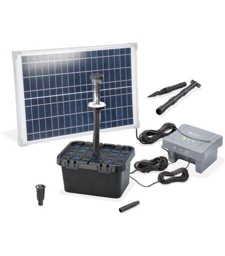Kit de filtration solaire pour bassin 25/700 LED+accumulateur Eau de bassin filtrée biologiquement L'effet de notre filtre de bassin repose sur le fait d'offrir aux bactéries de nettoyage latentes dans le bassin une surface de colonisation optimale, afin que les substances nocives présentes dans l'eau puissent être mieux décomposées. De plus, les éponges filtrantes servent à filtrer mécaniquement les particules en suspension et les saletés de l'eau du bassin. Pour une filtration biologique optimale, nous recommandons notre masse filtrante bio (article 101077). Il suffit de le placer dans la boîte de filtration entre les deux éponges. La boîte de filtration est livrée avec 2 sacs en filet pour n'importe quel média filtrant (zéolithe, absorbeur ou autre). Durée de fonctionnement particulièrement longue Grâce au rendement de charge optimal de l'accumulateur, vous obtenez ainsi des durées de fonctionnement moyennes particulièrement longues d' environ 10 heures lorsque l'accumulateur est ...