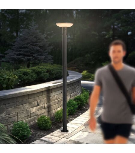 Lampe solaire sur pied Linus 200 Max CCT Le lampadaire le plus lumineux de notre assortiment ! Massif lampadaire avec détecteur de mouvement PIR dans un élégant design noir en aluminium. Le lampadaire présente une multitude de raffinements techniques. Des cellules solaires monocristallines puissantes et triées sur le volet trouvent leur place dans le module solaire de 6 Wp situé sur le dessus. Le design "full black" du module solaire complète le design moderne et intemporel du luminaire. Le module solaire est encastré derrière le verre et résiste aux intempéries. Même en cas de mauvais ensoleillement, il permet de recharger au mieux le bloc d'accumulateurs au lithium-fer intégré et d'utiliser la lampe toute l'année. Le corps du luminaire est en aluminium massif, la sortie de lumière en plastique opale. Cela garantit un éclairage uniforme dans un rayon de 360° autour du luminaire. Nouvelle fonction CCT (Controlled Color Temperature) ! La température de couleur peut être réglée en ...