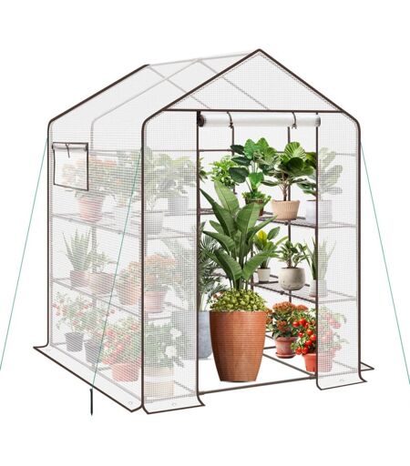 Serre de jardin blanche avec 10 étagères et porte enroulable, 143x143x195 cm - Sekey