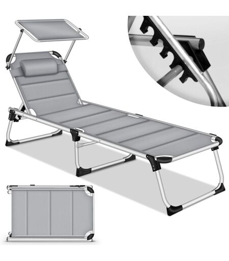 tillvex Bain de soleil avec capote et coussin, gris - revêtement premium Chaise longue de jardin pliante Chaise longue de plage avec dossier réglable