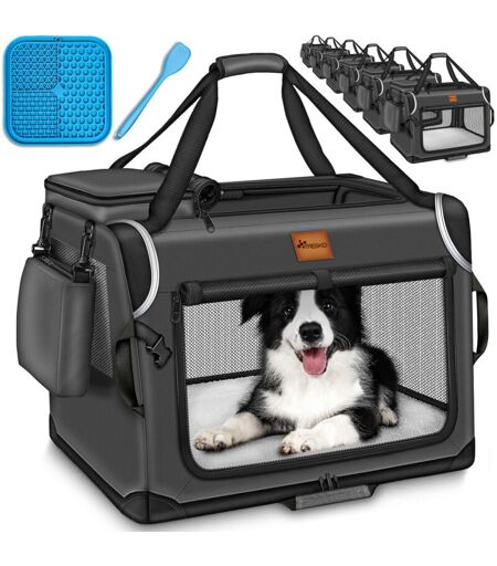 TRESKO Cage pliable pour chien, anthracite (XXXL 102 x 69 x 69 cm), avec tapis à lécher, spatule et réflecteurs Cage de transport pour chiens et