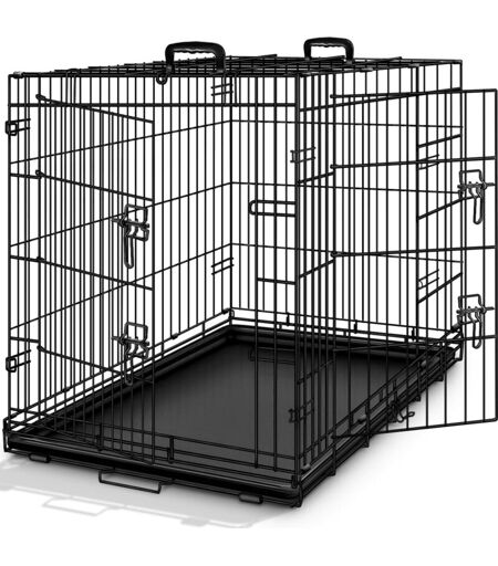 TRESKO Cage de Transport 77 x 48 x 54 cm pour Chien Pliable 2 Portes Transportable Caisse de Transport en métal