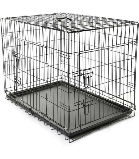 TRESKO Cage de Transport 91 x 58 x 64 cm pour Chien Pliable 2 Portes Transportable Caisse de Transport en métal