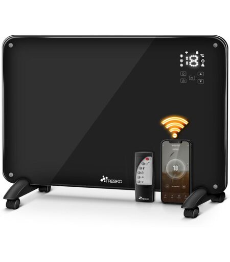 TRESKO Convecteur en verre 2000 W, application Wi-Fi, noir Radiateur électrique avec télécommande Radiateur convecteur tactile et écran LCD Radiateur