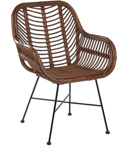 Chaise de salle à manger tressée. Ajoutez une touche naturelle à votre maison avec cette chaise en rotin foncé. Dotée d'une fabrication de haute qualité et d'une assise profonde, la chaise garantit un excellent confort lors de vos longues réunions d'après-midi entre amis. Grâce à son design exceptionnel, elle s'intègre parfaitement à tout espace de vie de style moderne, contemporain ou rétro. Le matériau naturel nécessite un entretien minimal tout en conservant son bel aspect frais pendant des années. Détails: Type de produit: Chaise de salle à manger Style: Boho Couleur principale: Marron Couleur du cadre: Marron Type de matière: Rotin Matière principale: Rotin Matière secondaire: Métal Matière du piétement: Métal Matière de l`assise: Rotin Accoudoirs: Oui Finition: Mat Empilable: Non Dimensions: Dimensions des accoudoirs: 64 cm Profondeur: 51 cm Hauteur du siège: 44 cm Largeur: 64 cm Hauteur: 89 cm Surface d`assise: 41x40 cm Poids: 5 kg Charge admise: 120 kg L`offre inclue: 1 x Chaise Caractéristiques clés: Surface d'assise large et confortable, Accoudoirs confortables profilés, Crée une ambiance agréable, Finition précise, Patins pour le pieds assurent la protection contre les rayures Informations d`assemblage: Pieds à monter. 5 - 15 min Informations supplémentaires: Attention ! Ne pas ouvrir l'emballage avec un objet pointu ou coupant qui risquerait d'endommager le produit. Pour garantir la stabilité de la construction et la sécurité d'utilisation, il est recommandé de vérifier si le produit a été correctement assemblé 2 semaines après son installation. Il est également recommandé de vérifier que les vis sont correctement serrées tous les 3 mois. Le produit est accompagné d'un manuel d'entretien détaillé afin de vous aider à préserver votre meuble dans le meilleur état pendant de nombreuses années à venir. Consultez ces conseils pour assurer l'entretien approprié à votre nouveau meuble - vous trouverez les instructions d'entretien à côté du manuel de montage. Conseils de maintenance: Rotin: 1.Nettoyez uniquement avec un chiffon sec. N'utilisez pas de détergents. Métal: 1.Nettoyez avec un chiffon et un détergent doux, essuyez bien ensuite 2.Pour éviter les rayures, n'utilisez pas de nettoyants abrasifs 3.Pour les éléments en cuivre ou chromés, utilisez un produit de polissage spécial. ...