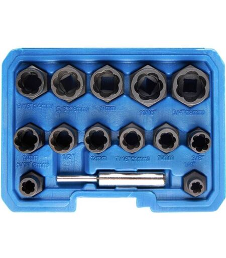 Informations techniques Clé à douille (pouces) : 5/16", 1/2", 7/16", 3/8", 1/4", 9/16", 5/8", 11/16", 3/4" Dimensions produit, largeur : 124 mm Longueur : 160 mm Poids : 819 g Propulseur : 3/8" Taille (métrique) : 8 mm, 10 mm, 11 mm, 12 mm, 19 mm, 17 mm, 16 mm, 14 mm Jeu de vis à profil hélicoïdal 3/8" Une connexion puissante est obtenue sur les têtes de vis et d'écrous endommagées, ce qui permet de résoudre facilement de tels problèmes. Le mandrin de retrait permet de retirer à nouveau les vis et les écrous du détrompeur. Ce texte a été traduit par une machine. Points forts Résistant aux chocs Contenu de la livraison Inserts : 1/4-8 mm (5/16)-3/8-10 mm-11 mm (7/16)-12 mm-1/2-13 mm-14 mm (9/16)- 16 mm (5/8)-17 mm-11/16-19 mm (3/4), Mandrin d'évacuation Configuration requise null ...