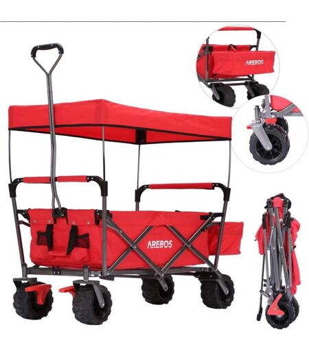 Arebos - Chariot à Bras Pliable avec Toit Chariot à Main Diable de Transport Chariot d'outillage avec 2 Poches en Filet et Une Poche extérieure