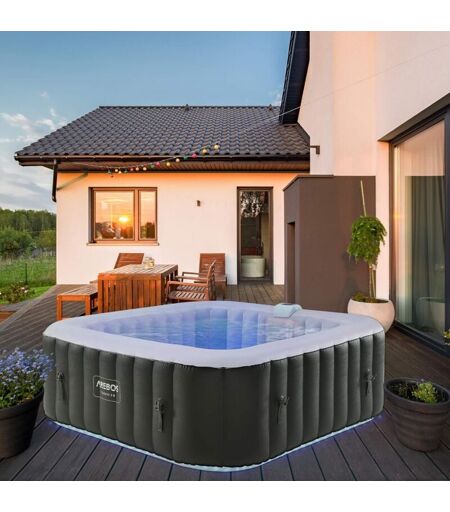 Arebos - Spa Gonflable Automatique - 185x185cm - 6 Personnes - Bande Lumineuse led - 130 Jets de Massage - 910 l - Noir