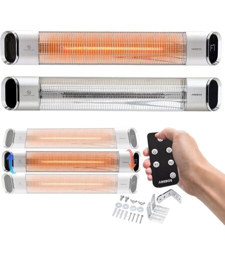 Arebos - Chauffage Radiant Infrarouge avec Télécommande Radiateur 2000 w Argenté