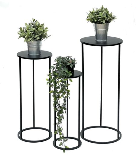 DanDiBo Tabouret à fleurs Métal Noir Rond Porte-fleurs Table d'appoint 96316 Lot de 3 Colonnes à fleurs Moderne Porte-plantes Tabouret à plantes