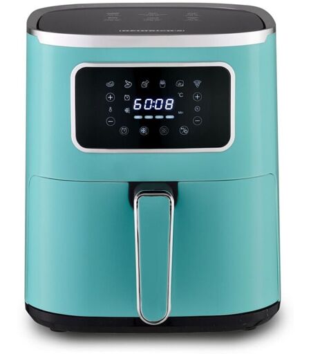 Design Pieds antidérapants:Oui Cuve amovible:Oui Type de construction:Simple Emplacement de l'appareil:Autonome Poignée(s):Oui Interrupteur marche/arrêt:Oui Type d'affichage:LED Couleur du produit:Vert Facile à nettoyer:Oui Type de commande:Tactile Puissance Puissance:1450 W Tension d'entrée:220 - 240 V Fréquence: 50 - 60 Hz Poids et Dimensions Largeur:336 mm Poids:3,7 kg Hauteur:354 mm Profondeur:336 mm Performances Nombre de programmes:6 Température (max):200 °C Fonction cuisson:Oui Fonction friture:Oui Capacité:5 L Durée de la minuterie (maximum):1 h Température (min):80 °C Crumbleur:Oui Accessoires lavables au lave-vaisselle:Oui Type de produit:Friteuse à air chaud Fonction décongélation:Oui Données d'emballage Emballage Poids à vide : 10 kg Profondeur du colis : 962 mm Largeur du colis : 350 mm Hauteur du colis : 354 mm Indication Indicateur de disponibilité : Oui Indicateur de température : Oui Voyant lumineux : Oui Affichage intégré : Oui ...