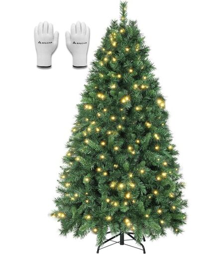 SALCAR Sapin de Noël Artificiel Lumineux 210cm, Arbre de Noel avec 380 LED, 868 Pointes de Branche, Gants et Pieds de Sapin de Noël en Métal,