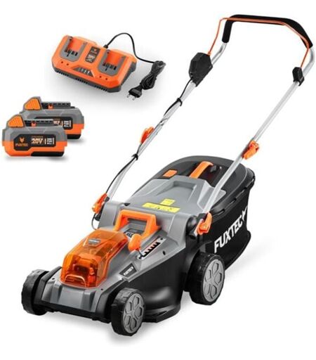 Tondeuse gazon batterie 40V (2X20V) Fuxtec FX-E2RM43 - largeur 43cm 2 batteries Li-Ion 4Ah, double chargeur 2,4A, bac 40L