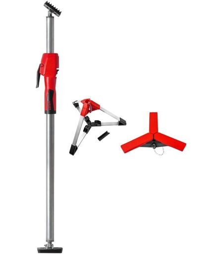 Support de plafond et de montage Capacité de charge maximale de 350 kg lorsque la barre télescopique est complètement rétractée Construction extrêmement stable grâce à des tubes d'acier très résistants et à des surfaces de contact en PVC antidérapantes (9 x 7 cm) Manipulation d'une seule main grâce à la poignée en plastique à 2 composants avec mécanisme de pompage Bouton de déplacement rapide pour rentrer et sortir rapidement la perche télescopique Force de maintien réglable en tournant le support sur la poignée Utilisation également dans les plans inclinés grâce aux surfaces de contact orientables en continu de -45° à +45°. Certifié GS pour la qualité et la sécurité Trépied de construction Accessoires pour les étais de plafond avec un diamètre de tube extérieur de 29 mm et 32 mm Stabilité, car la force de l'étai de plafond tendu agit ponctuellement vers le bas Les étais de plafond peuvent être placés librement dans la pièce, même sans haubanage supérieur, et sont donc également ...