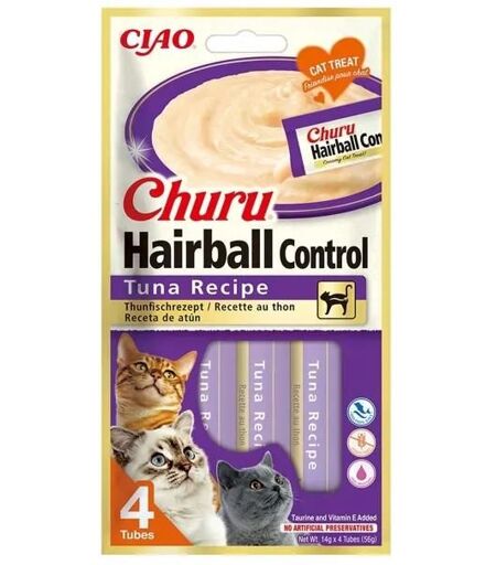 Inaba - Churu De Thon Pour Chat - Boules De Poils 4 Sticks De 14g (Poisson - Thon)