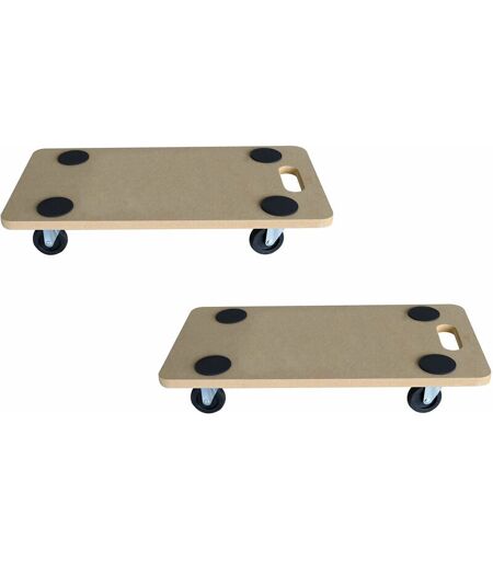 Jeu de 2 roulettes de transport, capacité de charge 150 kg - 58 x 29 cm - roulettes de transport de meubles avec poignée de transport Kit de 2 roulettes de transport pour meubles et autres objets jusqu'à 150 kg environ. Données de l'article : La taille est d'environ 58 cm x 29 cm x 9,5 cm (largeur x profondeur x hauteur). Matériaux : panneau MDF / plastique / métal couleur : brun clair / noir / argenté planche à roulettes extra stable épaisseur du plateau env. 1,8 cm roulettes stables en plastique d'environ 6,4 cm de diamètre peut être chargé jusqu'à env. 150 kg points antidérapants sur le dessus avec poignée de transport pratique idéal pour transporter des meubles, des bacs à fleurs plantés, etc. Contenu de la livraison : 1x set de 2 planches à roulettes de transport jusqu'à 150 kg - 58 x 29 cm ...