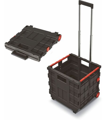 Chariot à provisions en plastique CART T pliable avec roues - 35 L - chariot de transport avec poignée télescopique Trolley pliable peu encombrant en plastique noir avec roues et poignée télescopique, volume d'environ 35 litres. Données de l'article : La taille de la boîte est d'environ 39,5 cm x 39 cm x 36 cm (largeur x hauteur x profondeur). Matériau : plastique couleur : noir / rouge chariot à provisions pliable avec roulettes à roulement facile roues d'env. 7 cm Ø avec revêtement en caoutchouc - roulement très silencieux avec poignée télescopique en aluminium - extensible par simple pression sur un bouton longueur de la poignée télescopique env. 85 cm (mesurée à partir du sol) pliable pour un gain de place - ne mesure alors plus que 44 x 40 x 7 cm volume de la boîte env. 35 litres capacité de charge maximale d'environ 25 kg idéal pour les courses, le ménage, les pique-niques, le camping ou même le jardin Contenu de la livraison : 1x chariot à provisions CART T noir - 35 L ...