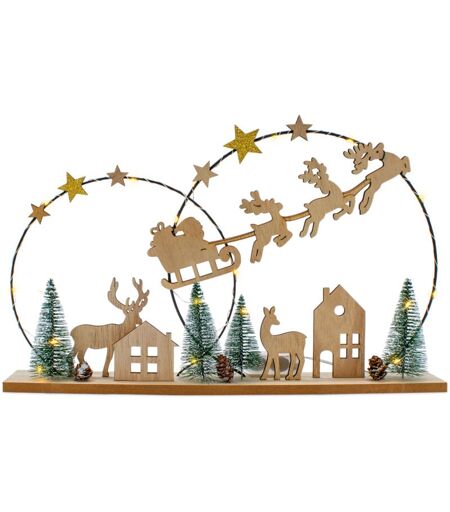 SPETEBO LED Deko Display en bois avec motif de Noël - 40 x 25 cm - Image silhoutten Père Noël avec traîneau illuminé blanc chaud - décoration de table de