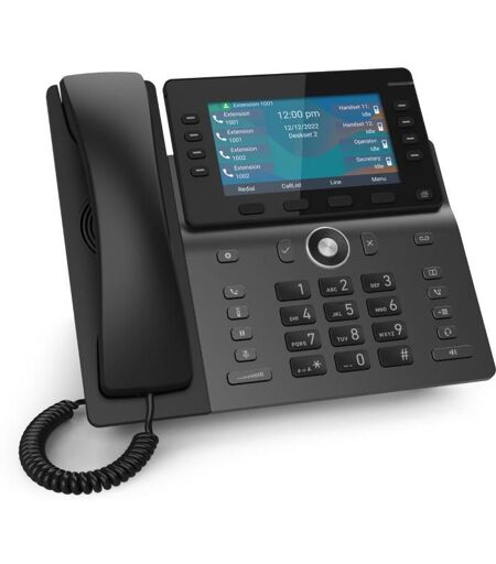 Snom M58. Type de produit: Téléphone IP, Couleur du produit: Noir. Capacité du répertoire: 200 entrées, Bande de fréquence: 1.88 - 1.9 GHz. Écran: TFT, Taille de l'écran: 12,7 cm (5"), Résolution de l'écran: 480 x 272 pixels. Tension d'entrée de l'adaptateur secteur: 100 - 240 V, Fréquence d'entrée: 50 - 60 Hz. Largeur: 240 mm, Profondeur: 175 mm, Hauteur: 210 mm ...