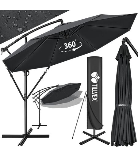 tillvex Parasol déporté Anthracite hexagonale 350 cm avec manivelle Pare-soleil avec pied Protection UV en aluminium pour le jardin Parasol à